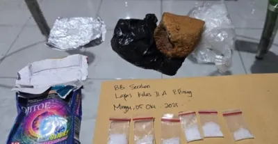 “Setelah dibuka, kami menemukan enam paket kecil serbuk putih terbungkus kertas timah, disimpan dalam kotak rokok, lalu dimasukkan ke dalam plastik berisi batu,” jelas Sugeng.